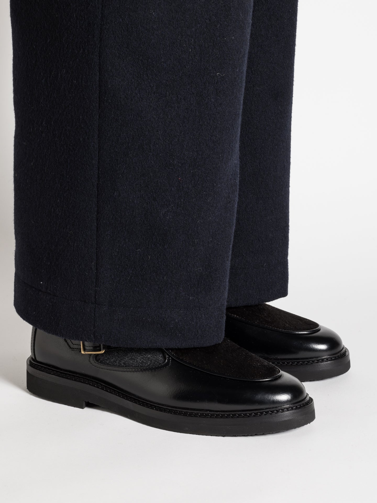 Regular price €237,00These elegant shoes capture the contemporary essence of Jacques Solovière, seamlessly blending tradition with modernity. Crafted from premium smooth black leather, they feature a distinctive hair-on-calf panel that creates a striking contrast of textures and adds an elegant touch. The playful "hairy" detail is sure to turn heads and spark conversations about where you found such unique footwear!