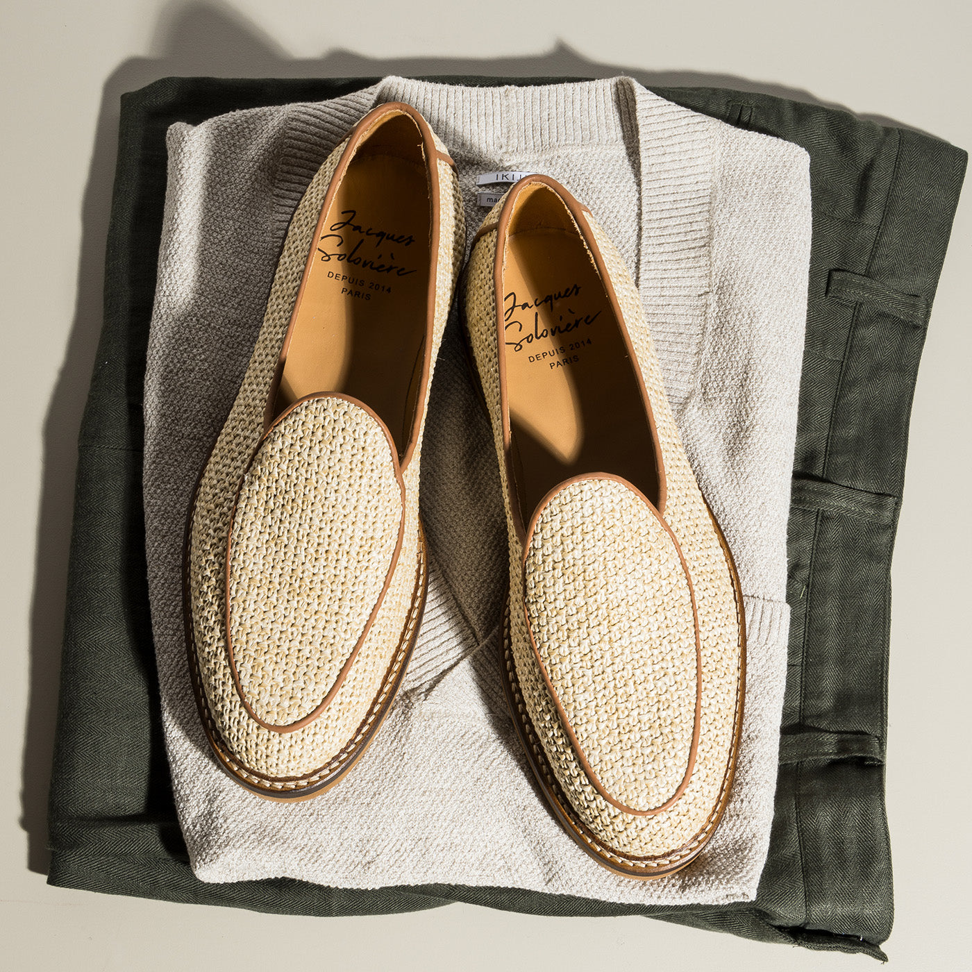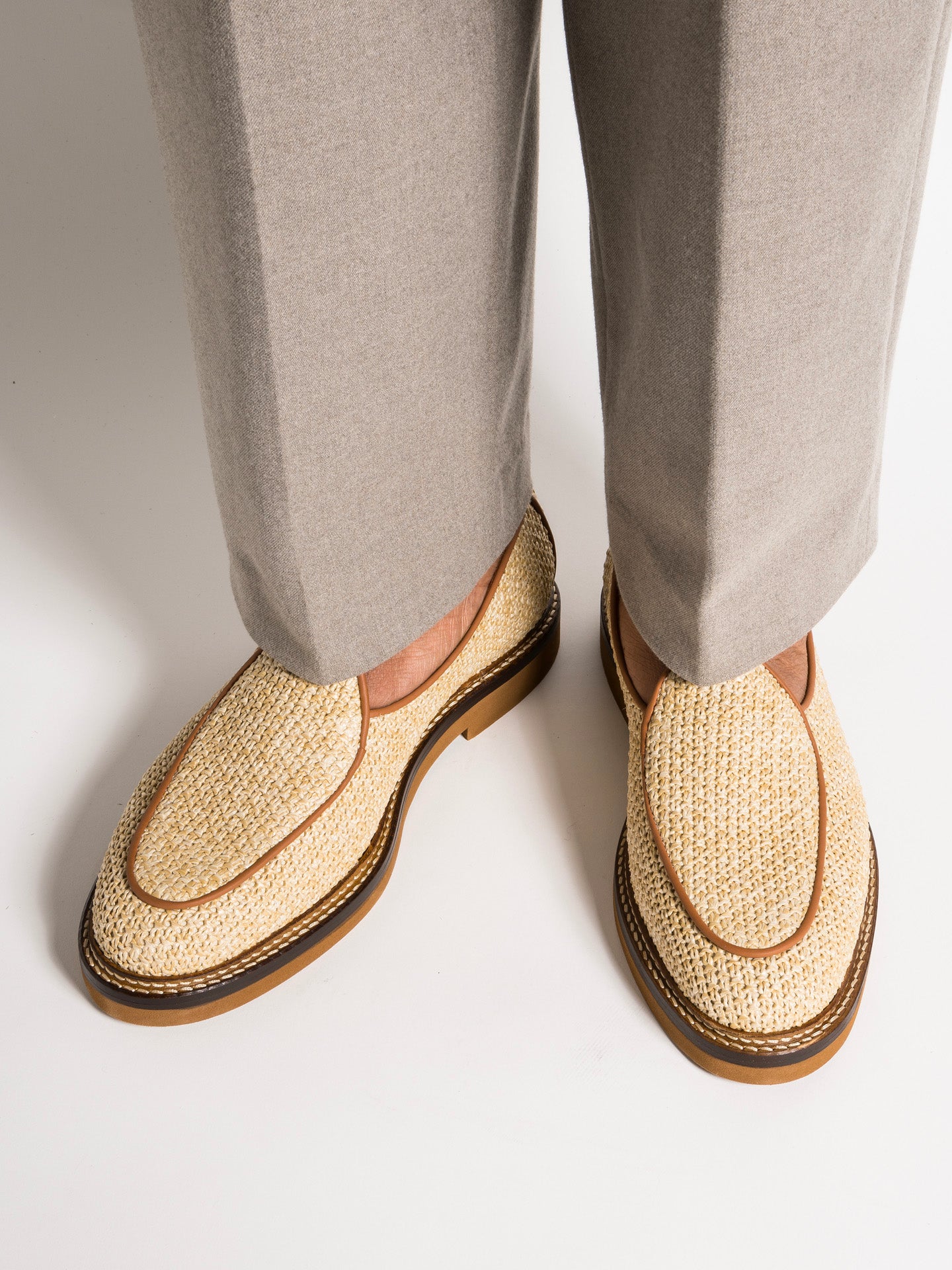 — Tan raffia textile upper