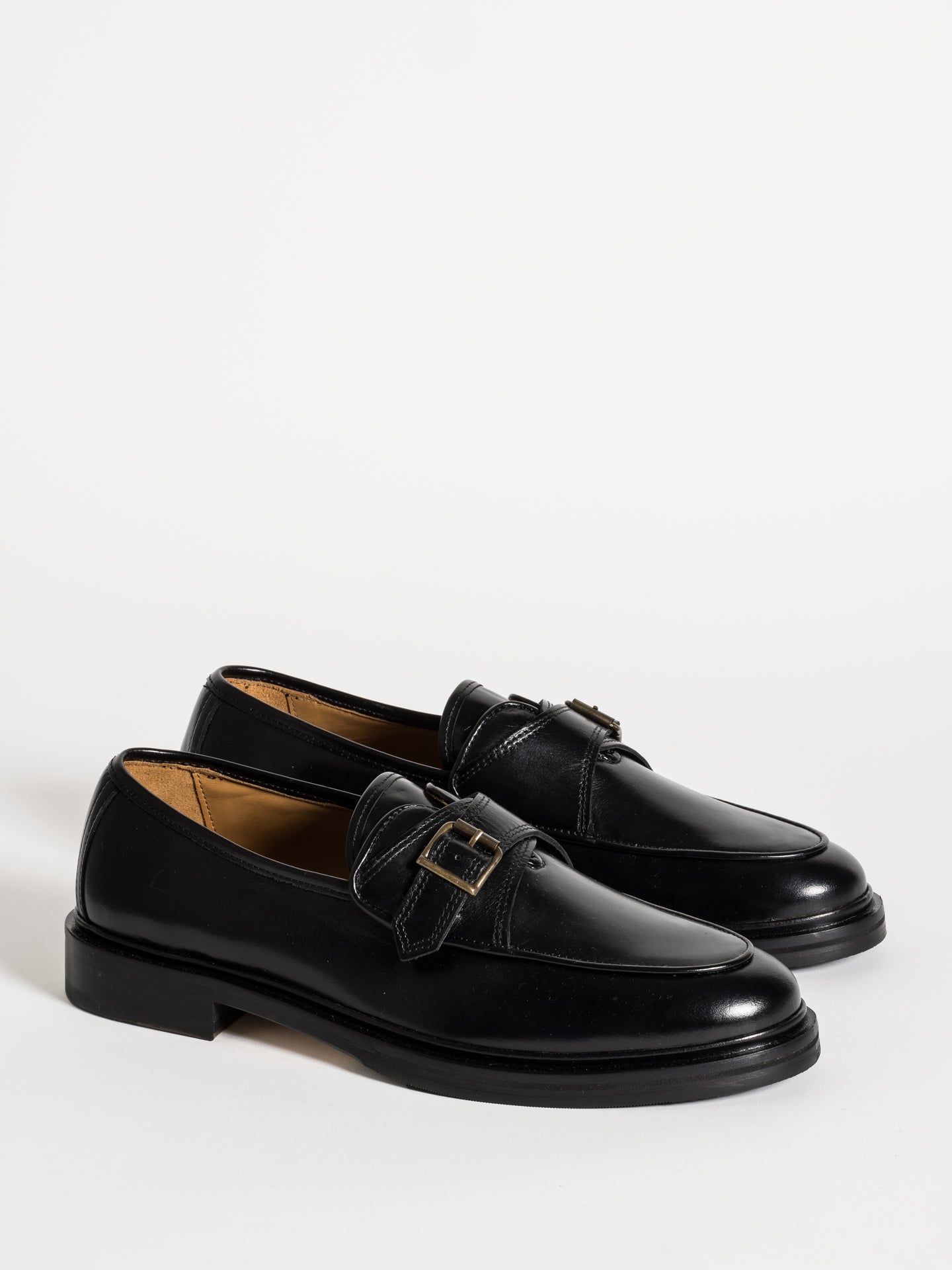 Serge buckle derby shoes embody the style of the classic gentleman. Its calf leather has a light shiny finish, which gives an elegant vintage touch. The intricate yet simple buckle adds a touch of refinement to the style. The shoes also feature a minimalistic leather sole with a rubber pad to ensure stability upon walk.