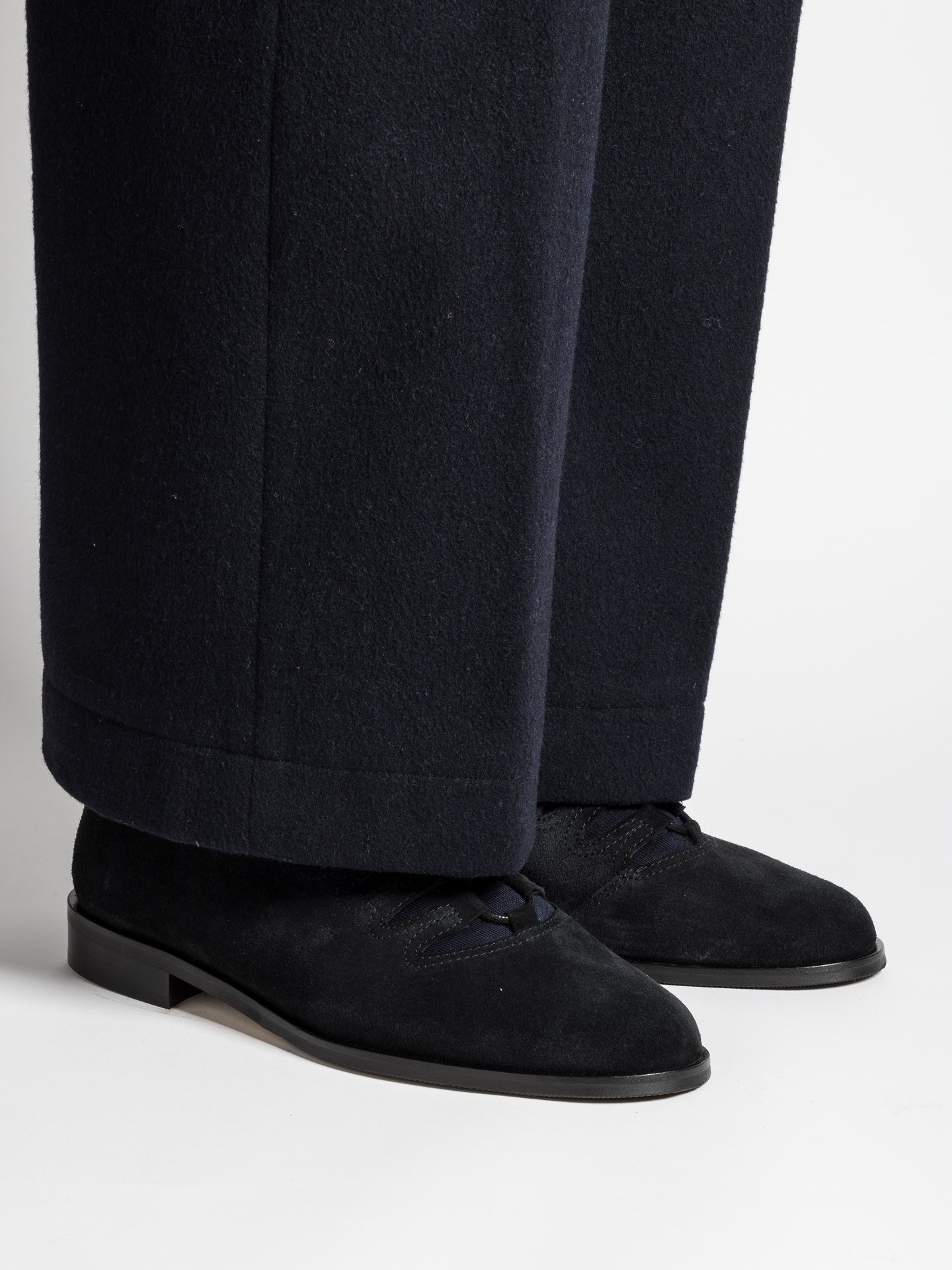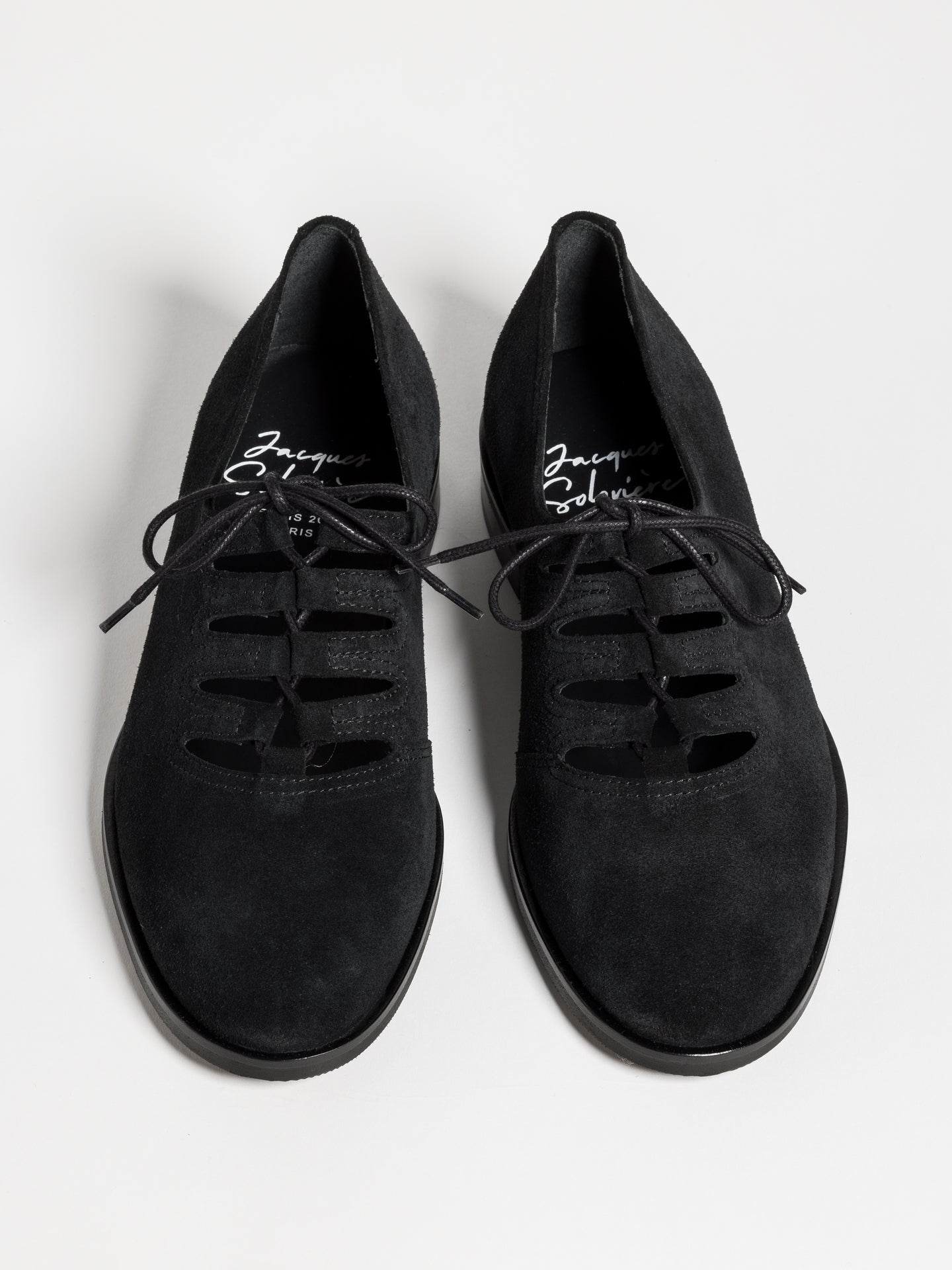 Steve Suede Black is a new update version of Jacques Solovière Paris's first unisex derby, crafted from big grained leather in a one piece design. All our shoes are produced in limited numbers.