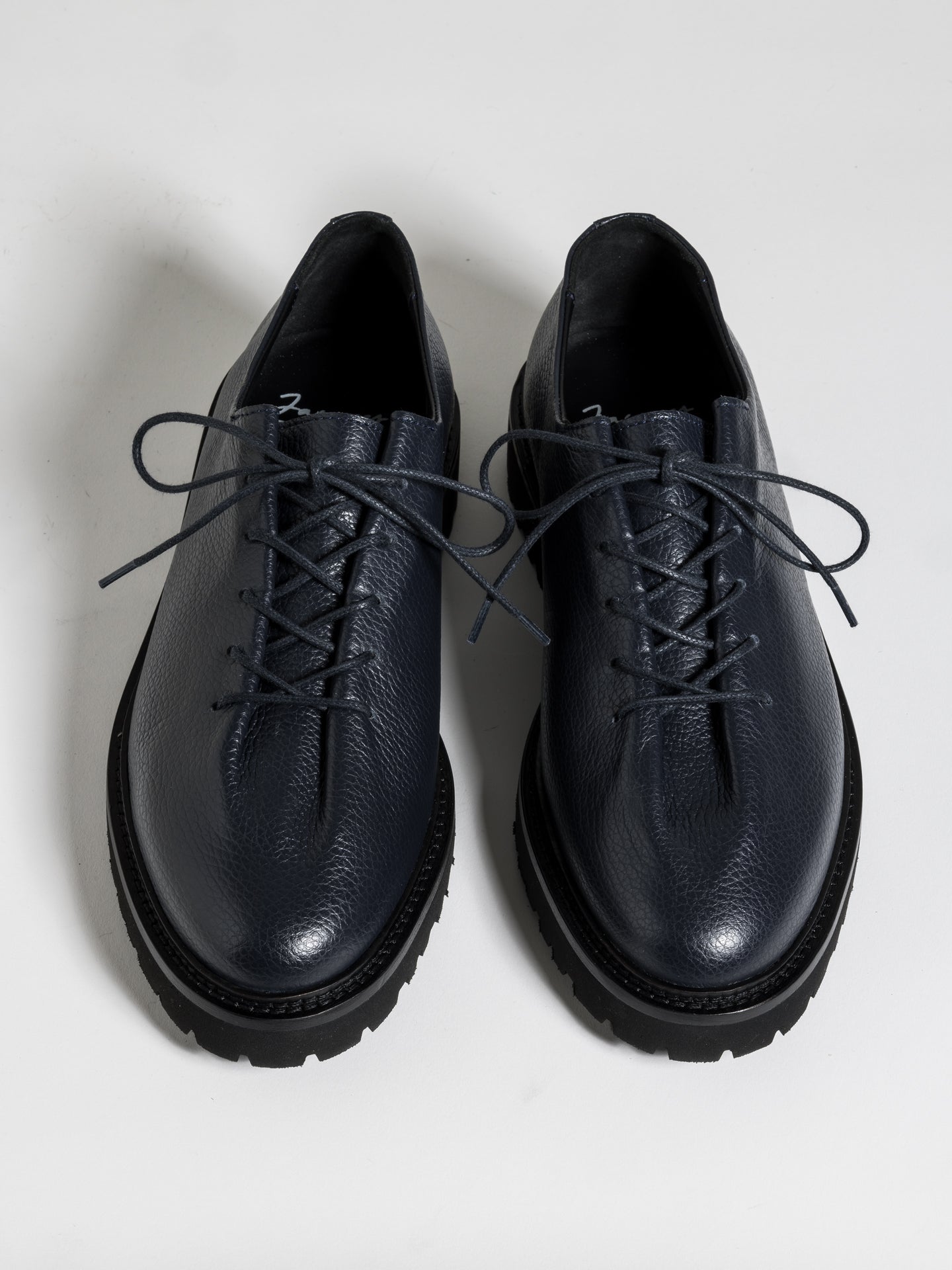 Regular price €257,00Jacques Solovière Paris introduces a new colorway of the iconic Edouard Lug. Now available in Odissea navy grained calf, this edition brings a fresh depth to the timeless silhouette. The contrasting black Blake construction lug sole ensures flexibility and durability, while the black leather lining enhances comfort and refinement.