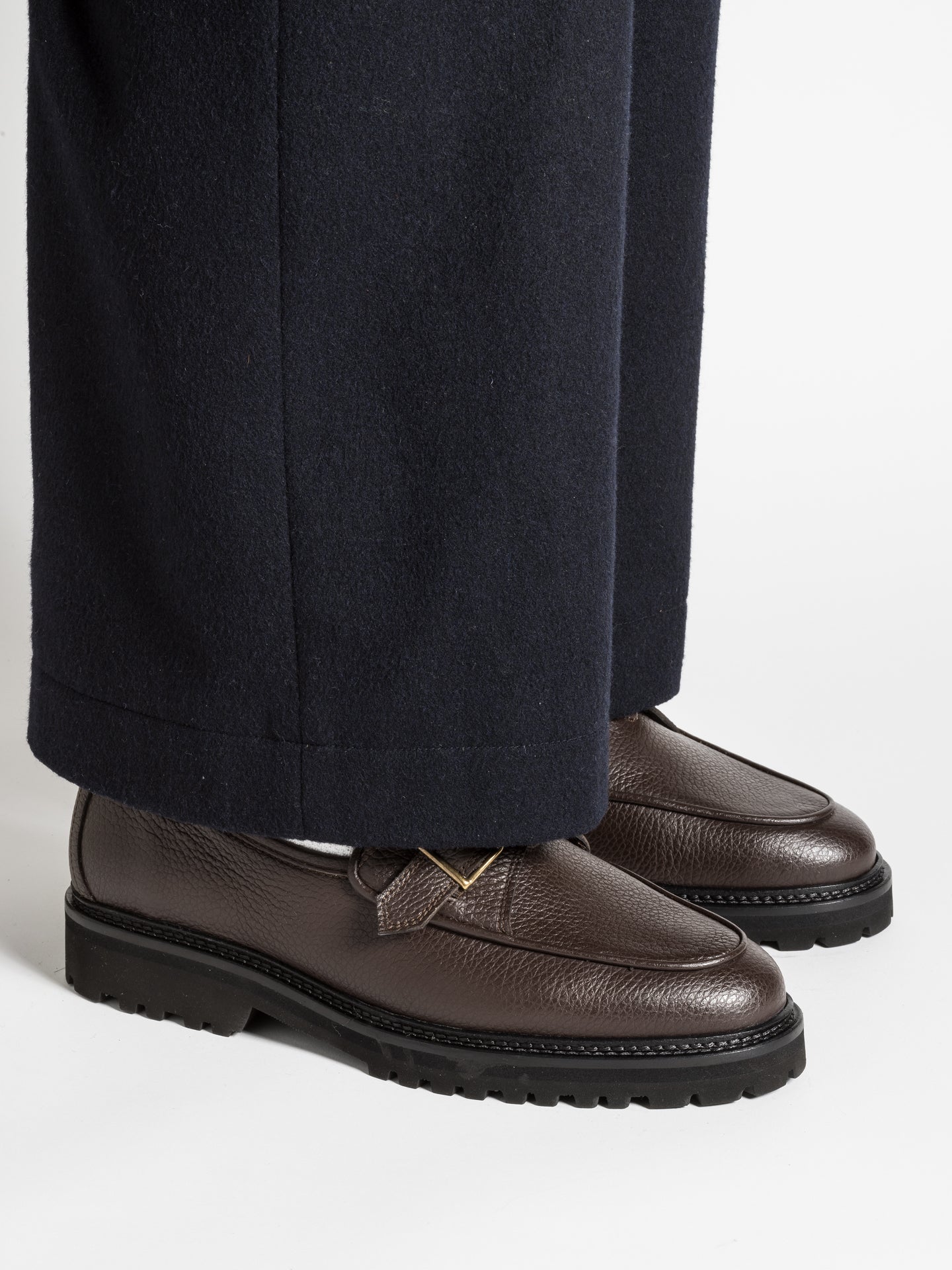 Though more resistant to daily wear than smooth leather, grained calf is not water-repellent and can be sensitive to moisture and staining.