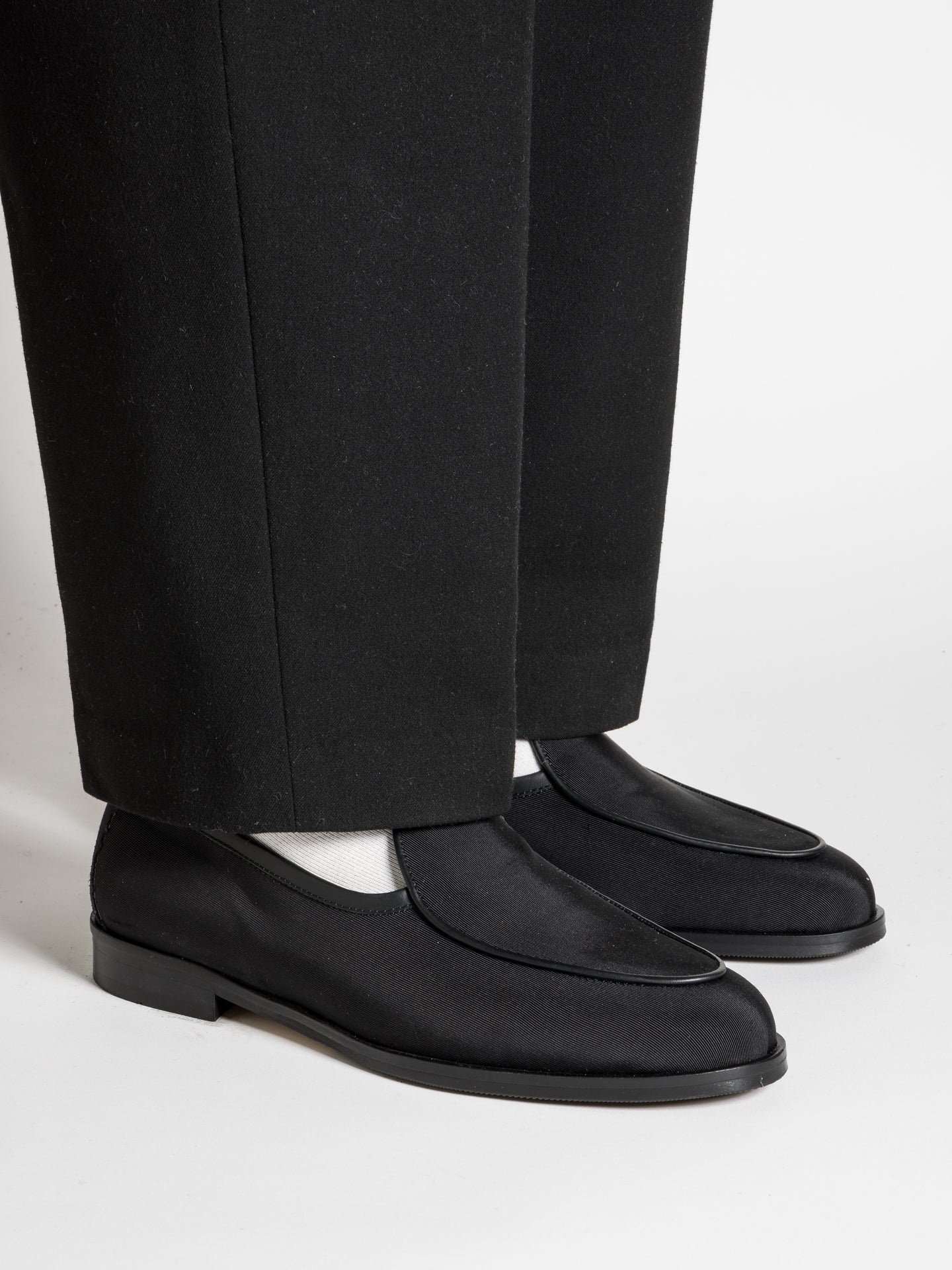 Regular price €207,00The Jacques Gros Grain Black is a bold reimagining of classic style, crafted entirely from luxurious black Italian nylon fabric that wraps elegantly around the structured loafer design. With a rubberized leather sole, this loafer offers an impeccable blend of style and confidence. Inspired by our popular Jacques New loafer, this edition brings an artistic edge that guarantees a standout look.