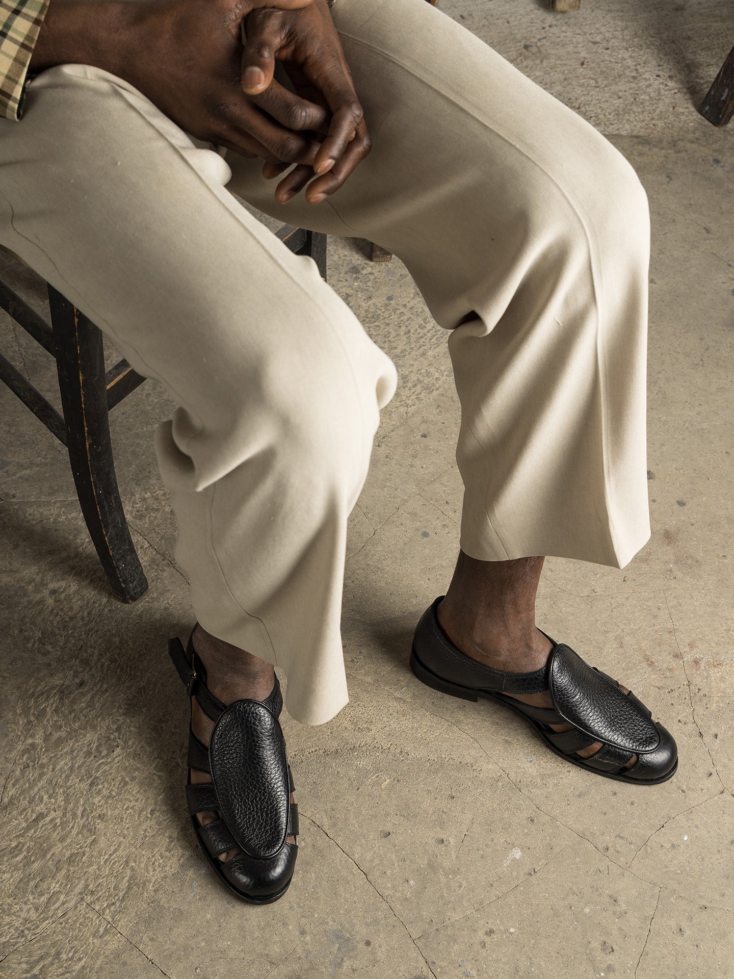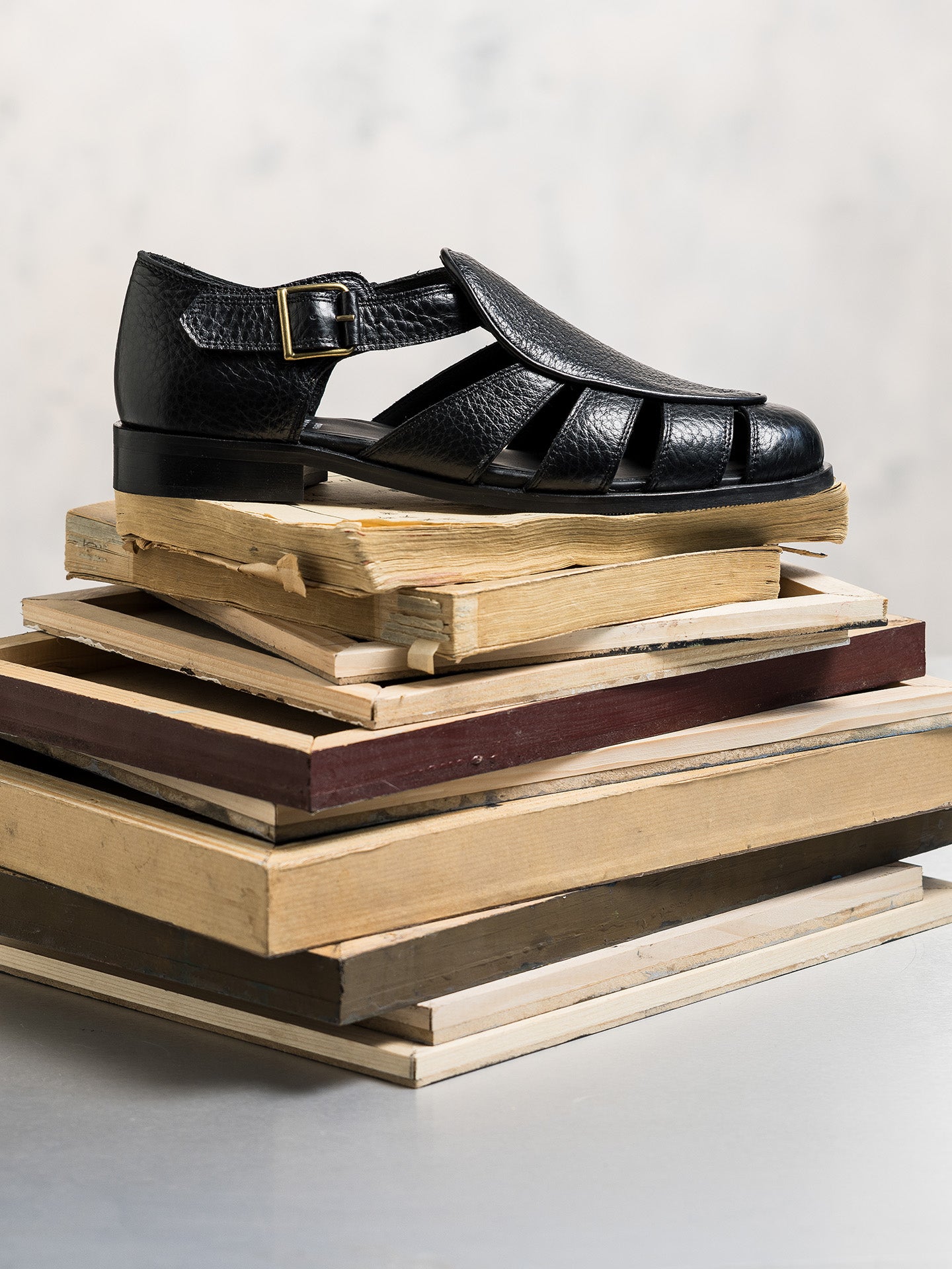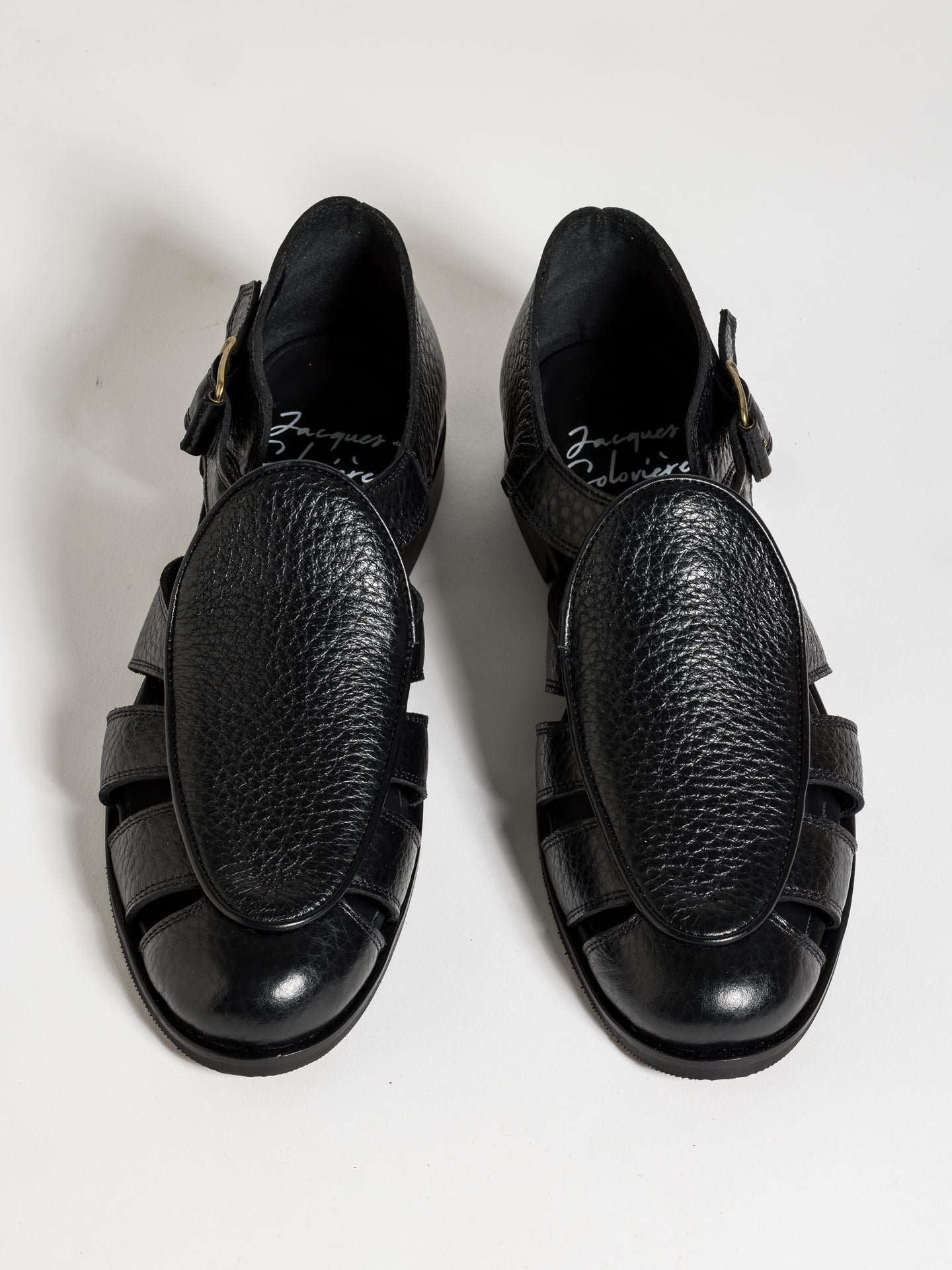 Regular price €236,00We introduce a new edition of the Franck sandal, now crafted in Jumbo black grained calf. With its bold, oversized texture, this statement material elevates the sandal’s minimalist design, adding depth and character. The sleek silhouette, paired with a comfortable leather footbed and durable sole, offers both style and ease for effortless summer wear.