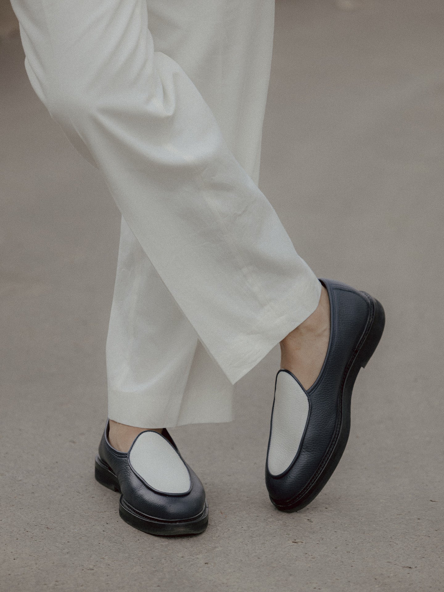 This colorway serves as a chic alternative to a black and white loafer. With the already sophisticated silhouette of the Lex, this two-tone design elevates any outfit and adds a touch of style to whatever you pair it with. I love styling these loafers with contrasting colors, such as black relaxed trousers paired with a nicely deconstructed sport coat with subtle patterns. Alternatively you may also embrace a classic American look with these loafers, like relaxed high waisted denim, a clean white tee-shirt and a timeless black leather jacket. This versatile colorway not only complements a wide range of ensembles but also enhances your style with its unique and refined aesthetic.
