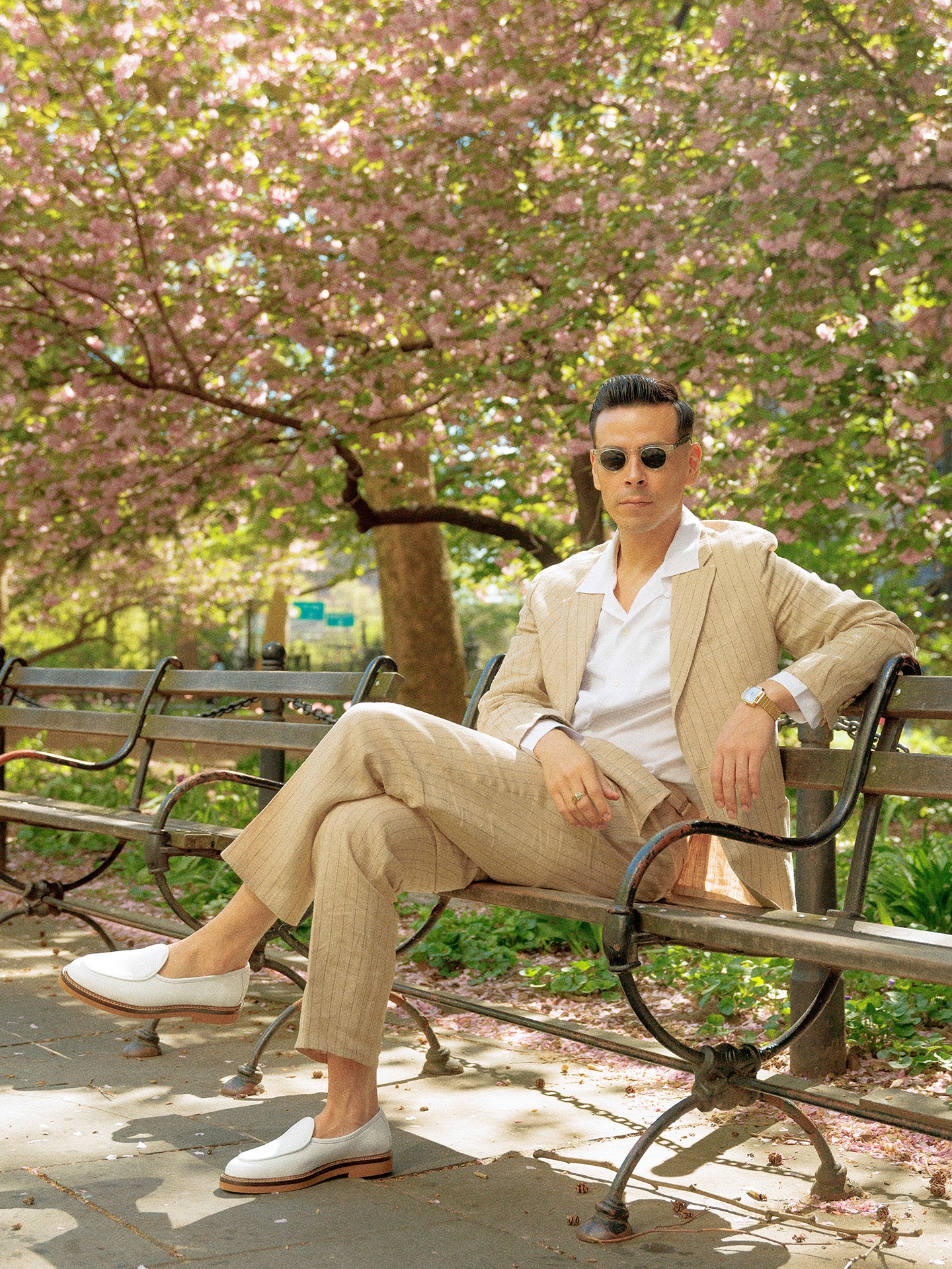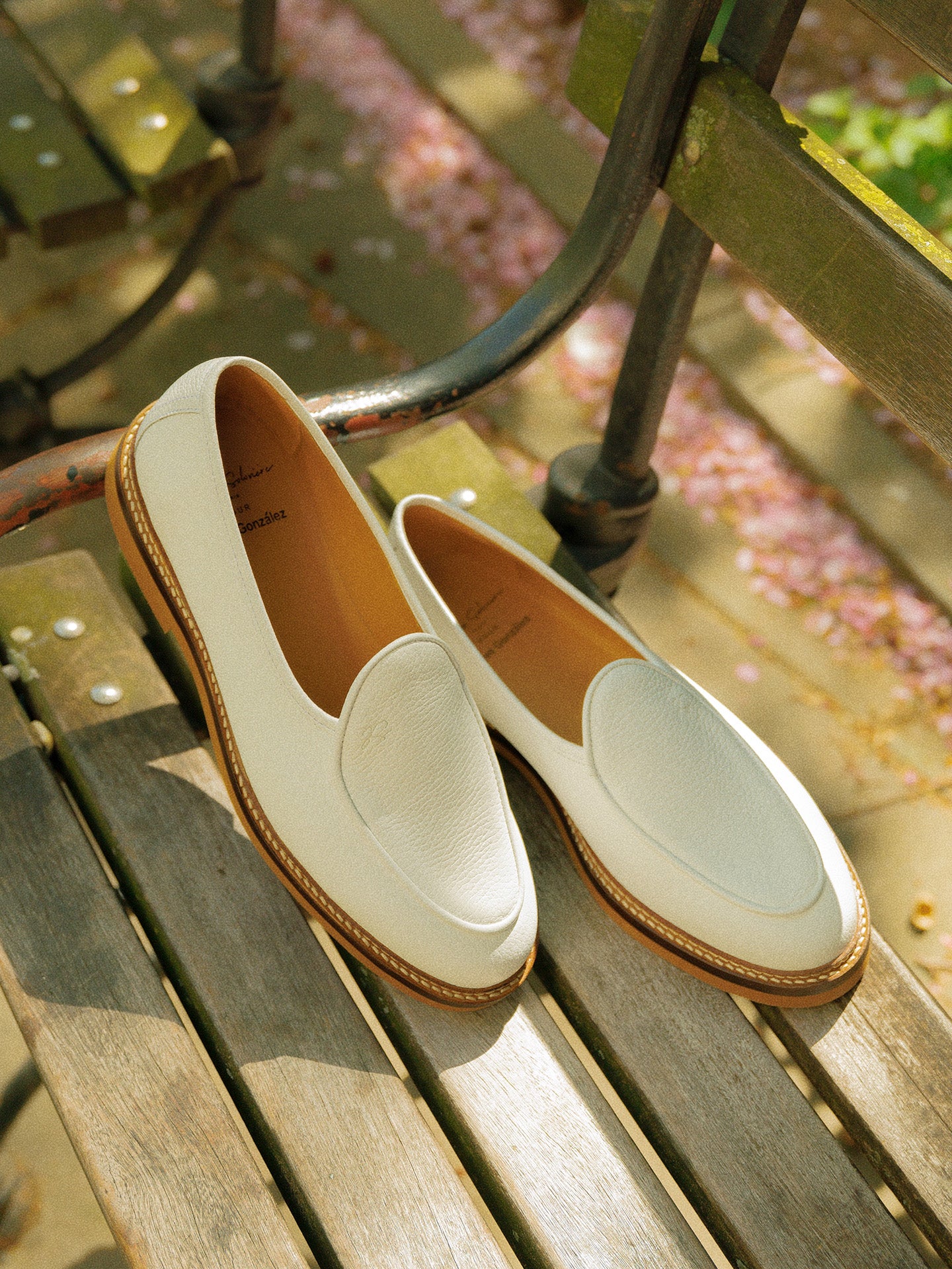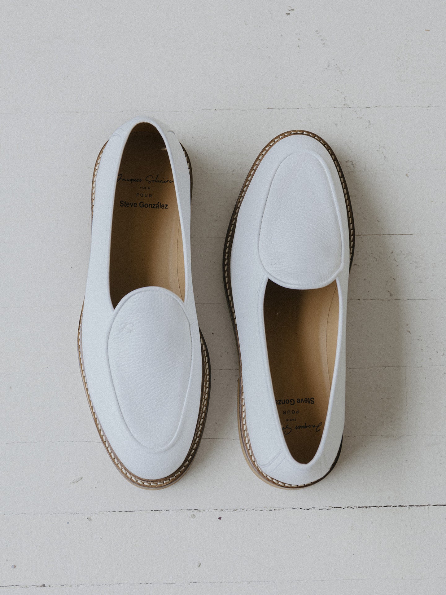 The white loafer, a colorway that exudes confidence and romanticizes the essence of a European summer, is a versatile and stylish addition to any wardrobe. One of my favorite ways to pair and style these loafers is with an all-white ensemble, preferably a linen suit and complimented with your favorite sunglasses. You can also wear these loafers with white trousers, earth-tone colorways, or a pair of relaxed chino trousers accompanied by a nice knitted polo. For a more casual yet refined look, a perforated tank top paired with a suede, silk or linen bomber jacket will also do wonders with this pair. Any of these pairings above epitomizes effortless elegance and sophistication.