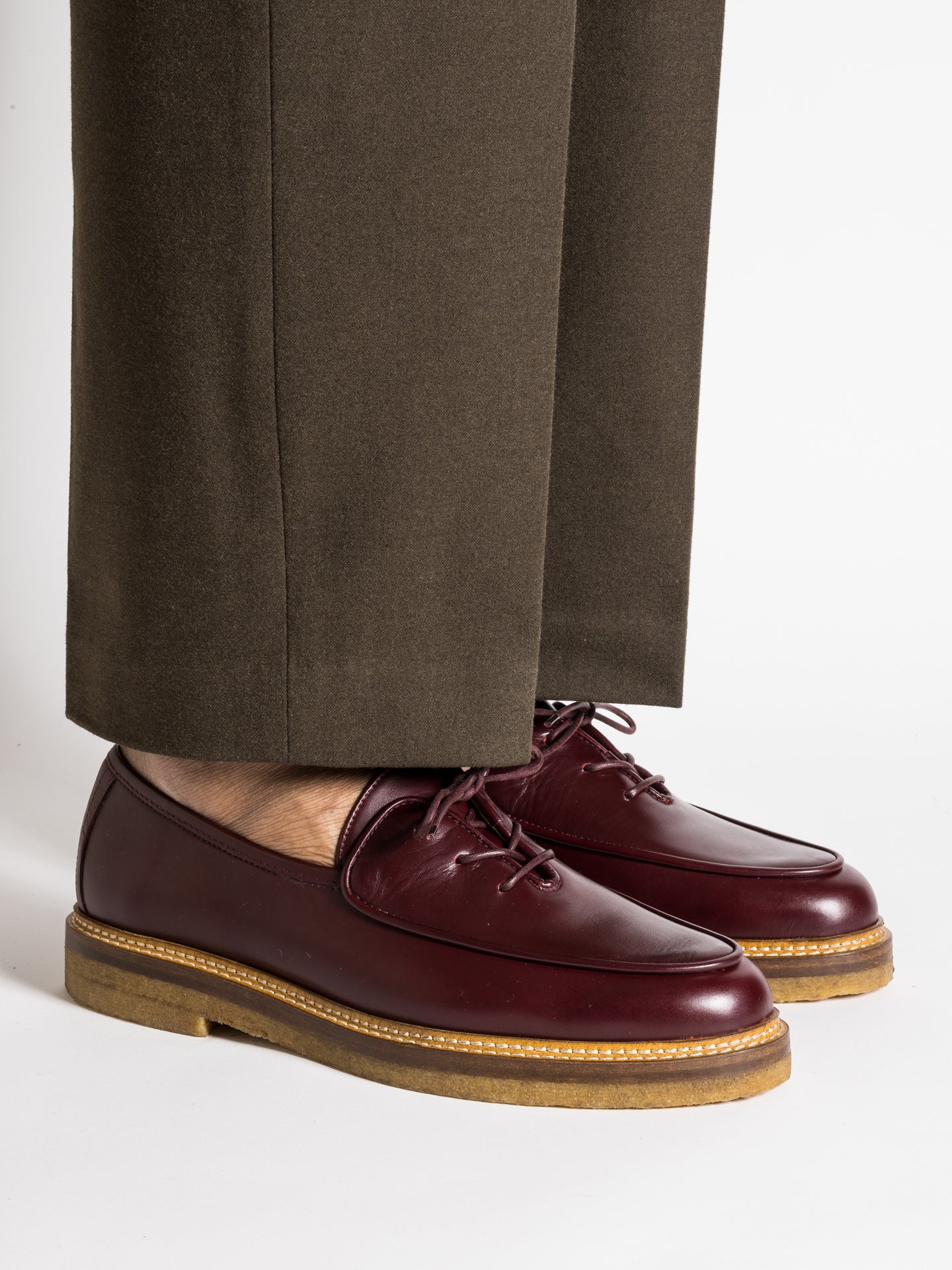 — Tan crepe sole with Blake stitching