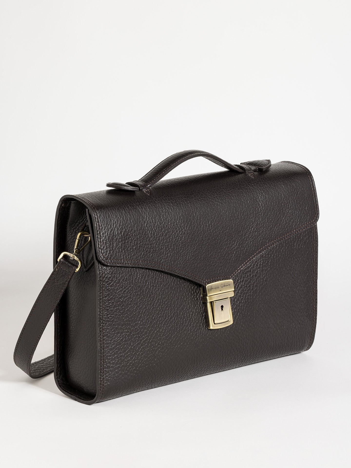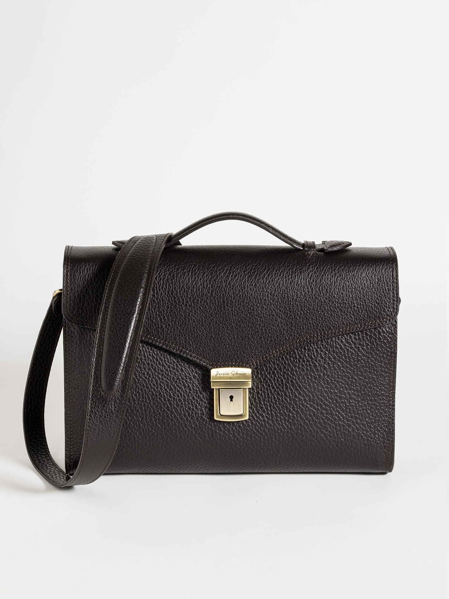 Meet the Ced. A modern take on the classic briefcase, effortlessly blending sophistication and functionality. Crafted from rich Ebano grained leather, it offers a structured silhouette designed to hold your computer or documents and daily essentials with ease. The detachable shoulder strap ensures complete freedom of movement, making it the perfect companion for both business meetings and city strolls. Understated yet refined, the Ced adapts to your rhythm with timeless elegance.